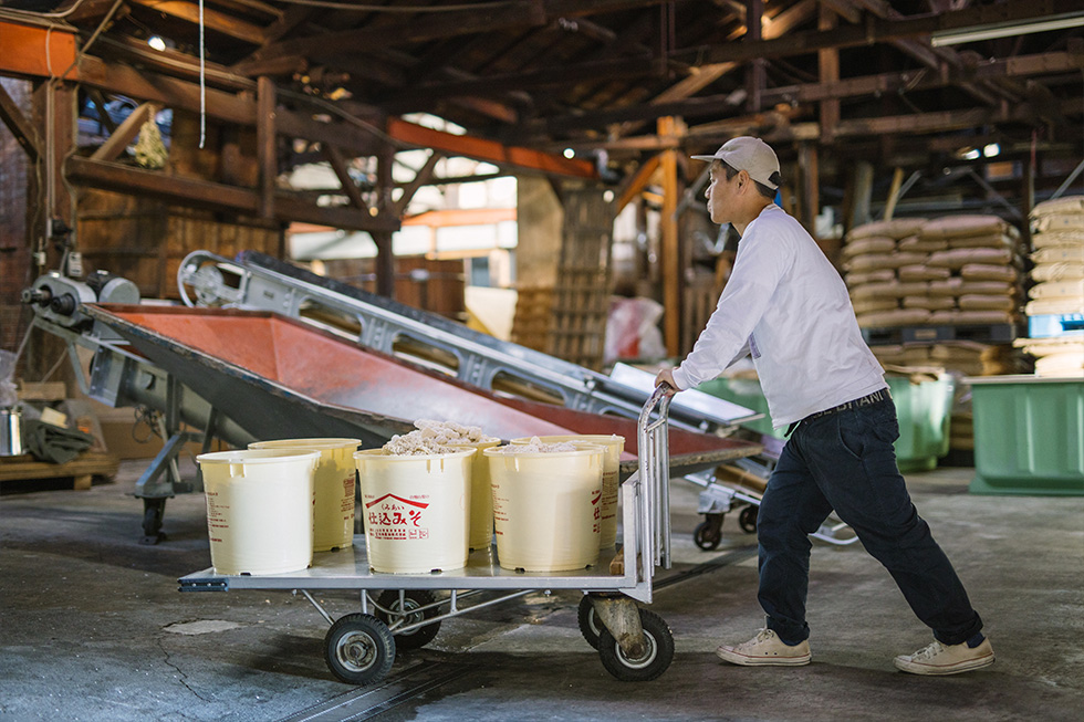 明治元年より味噌、醤油の製造を始め、150余年にわたって醸造業を営んでいます。 社名は「五味醤油」ですが、現在醤油の製造は止め、味噌のみ醸造しています。家庭的な小さな会社だからこそ、昔ながらの製法にこだわり、目の届く範囲で天然醸造を行っています。 日本全国どこに行っても、同じコンビニエンスストアやスーパーがあり、簡単に同じものを手に入れることができます。 同一化、簡素化の食品の流れの中で、発酵食品は各地の独特な製法で仕込まれ、その種類は多岐にわたり、地方色豊かな食文化を実感させるものです。一口に味噌といっても、1週間で製品化するものもあれば、3年かけて醸造するもの様々です。 この奥行きの広さゆえに、小さな会社でも可能性があり、存在意義があると確信しています。