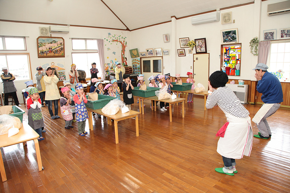自社のこうじ材料にした「手前みそづくり」の普及活動にも力を入れています。幼稚園保育園の子どもたちやそのお母さん、学生さんや、公民館の催しまで、世代を越えた様々な人たちと一緒に体験すること大切にしています。