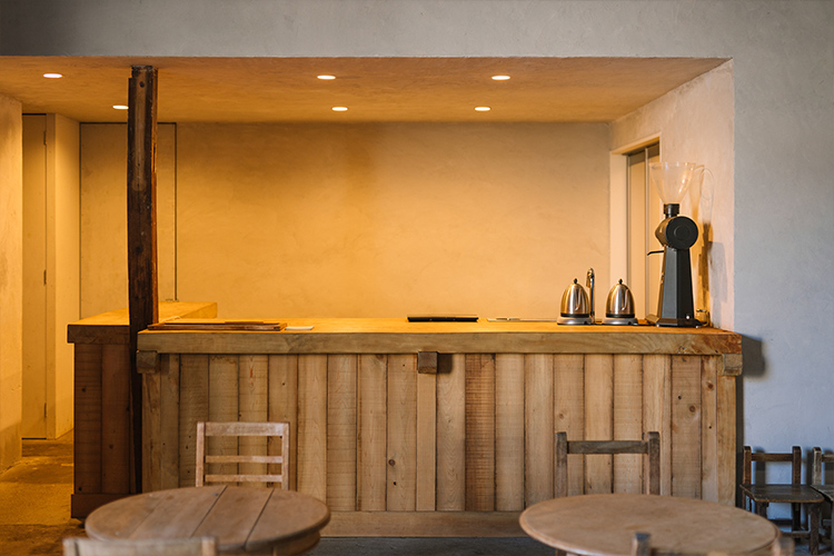そして、2019年6月よりAKITOCOFFEEの焙煎所と喫茶スペースとしてオープン。閉ざされていた蔵が街との接点を持つ場所として、再スタートしました。古材を使用したパッチワークの壁からは、みそ蔵を覗きこむことができます。